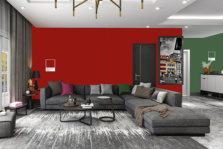 在考慮色彩配置時,若無法接受飽和度太高的紅,非常推薦使用大寶R8855-40D故宮紅,屬于低彩度深紅色系,除了與上述顏色搭配外,更適合放在空間某處作為焦點,例如玄關(guān)、電視背景墻..等,讓人不自覺的往此處吸引,在視覺上擁有亮點帶出時尚摩登感。