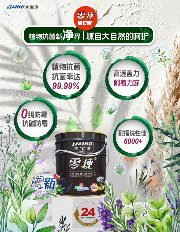 大寶漆「零純+植物抗菌」系列煥新升級(jí),融合【無(wú)添加】?jī)粑杜浞?,完成從“抗菌防霉”到“純凈呼吸”的安全躍升—無(wú)論新房初裝,還是舊居翻新,皆可安心交付。