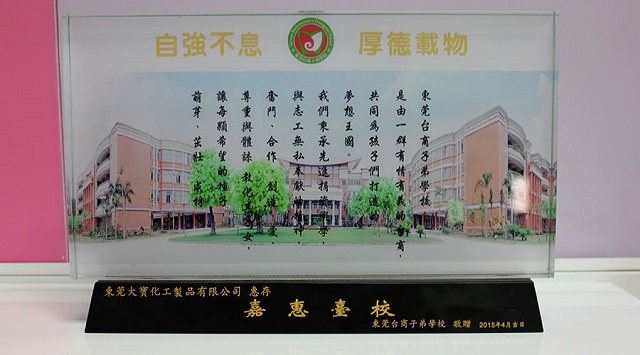 學(xué)校贈(zèng)送東莞大寶化工紀(jì)念品