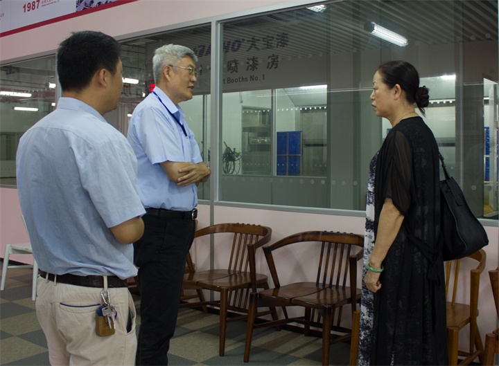 隨后,在陳春華總經(jīng)理陪同下,孫蓮英會(huì)長(zhǎng)分別對(duì)智能化涂裝測(cè)試線、色板中心、自動(dòng)立體倉(cāng)儲(chǔ)系統(tǒng)、技術(shù)部中央實(shí)驗(yàn)室、后花園等進(jìn)行了全面細(xì)致的參觀。大寶化工優(yōu)美的廠區(qū)環(huán)境、先進(jìn)的智能涂裝干燥設(shè)備、倉(cāng)儲(chǔ)信息化管理、強(qiáng)大的科研設(shè)備人才隊(duì)伍、完善的管理制度等給孫會(huì)長(zhǎng)留下了深刻的印象,孫會(huì)長(zhǎng)在認(rèn)真觀看的同時(shí)對(duì)東莞大寶企業(yè)實(shí)力不斷贊許,對(duì)大寶漆的品質(zhì)充分肯定。并勉勵(lì)大寶,環(huán)保政策與日俱增,家具企業(yè)油改水轉(zhuǎn)型升級(jí)迫在眉睫,而水性涂裝和干燥成為了家具企業(yè)升級(jí)的大難點(diǎn),大寶漆率先在行業(yè)內(nèi)為家具企業(yè)轉(zhuǎn)型升級(jí)量身打造了一條水性智能涂裝干燥線,為行業(yè)推廣水性漆發(fā)揮了重要作用,成為了水性涂料推廣應(yīng)用的先行者,中家協(xié)也在整合綠色家具產(chǎn)業(yè)鏈資源,此設(shè)備的投入運(yùn)營(yíng)必將為綠色家具提供重要樣板,大寶漆將繼續(xù)引領(lǐng)家具涂裝行業(yè)新前沿。