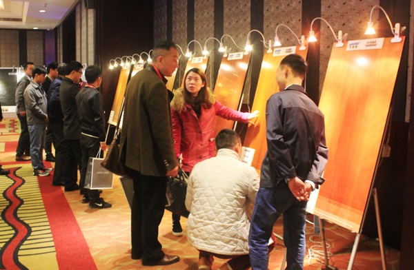 此外,與會(huì)者就大寶水性漆產(chǎn)品、寶宮石系列產(chǎn)品、歐式涂裝等產(chǎn)品工藝,提出自己的疑問(wèn),與專業(yè)人員進(jìn)行溝通交流,并就當(dāng)前的市場(chǎng)狀況等表達(dá)了自己的看法與見(jiàn)解。會(huì)議期間,還進(jìn)行了色板展示,供與會(huì)人員觀察了解歐式透明涂裝、水性木器漆、寶宮石等產(chǎn)品工藝的實(shí)際涂裝效果。