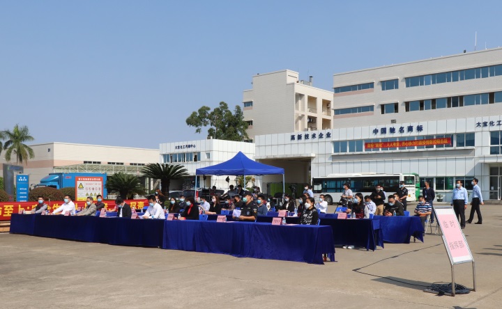 鎮(zhèn)指揮部在大寶化工成立現(xiàn)場指揮部,鎮(zhèn)人大主席吳美嬌,鎮(zhèn)委委員、公安分局局長楊方煜分別擔任現(xiàn)場指揮部總指揮和副總指揮,指揮現(xiàn)場各項處置工作。最后,在鎮(zhèn)疾控中心、衛(wèi)健局等相關職能部門的共同努力及大寶化工的積極配合下,經(jīng)“疫情發(fā)現(xiàn)、啟動預案、處置工作”等環(huán)節(jié),本次應急演練順利完成。