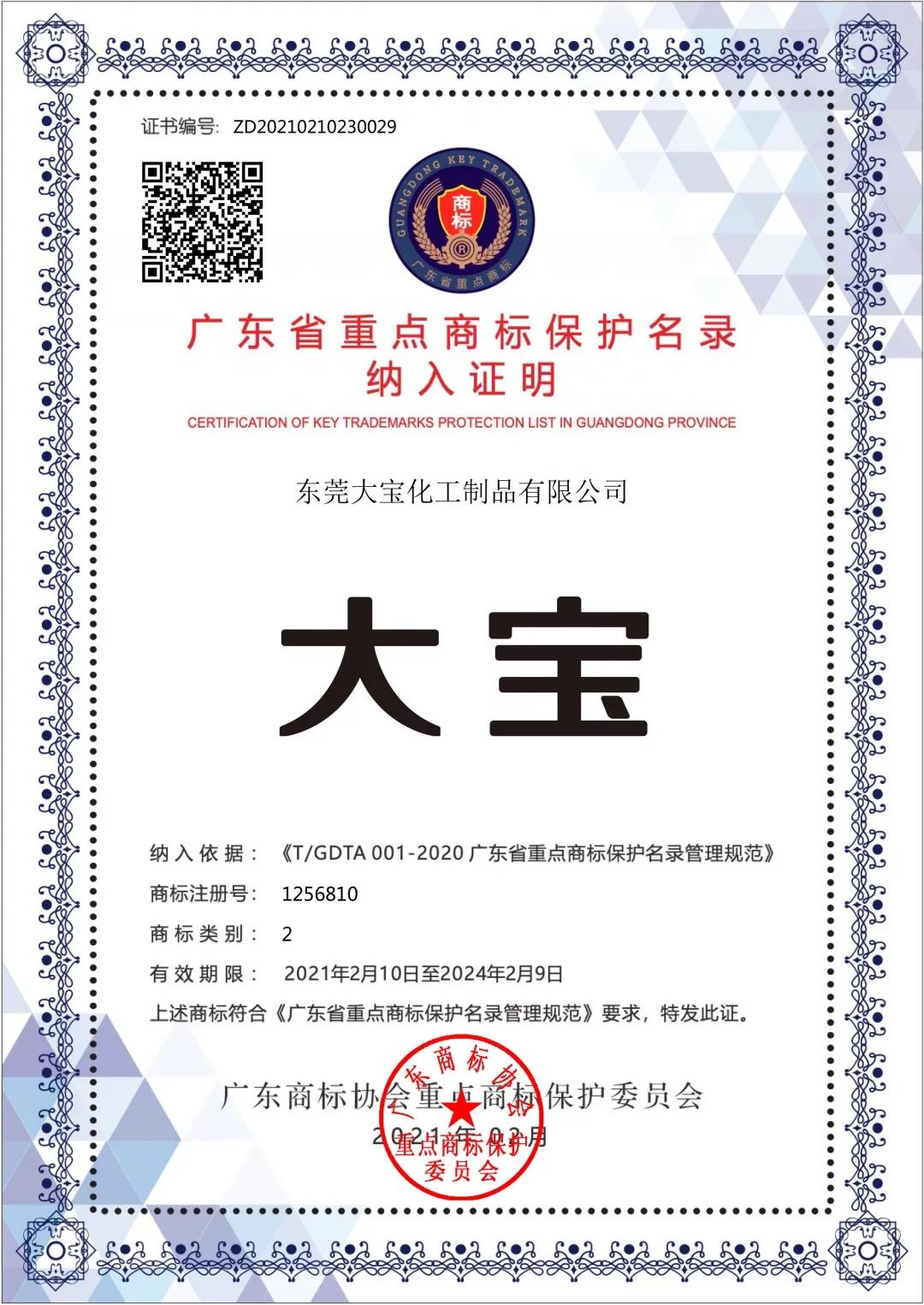 經(jīng)過近一年的嚴格審查和篩選,近日,大寶漆商標被納入廣東省重點商標保護名錄。據(jù)悉本次評選涵蓋全國各大知名品牌企業(yè),最終有790多件商標納入本次保護名錄中!新征程喜訊加磅,企業(yè)實力及品牌價值再獲權威認證!