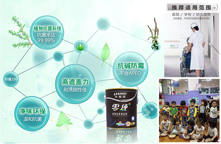 大寶始終將消費者的健康放在首位,將【植物抗菌技術(shù)】導(dǎo)入涂料中,對配方技術(shù)進行創(chuàng)新升級,并成功研發(fā)零純+植物抗菌墻面漆。