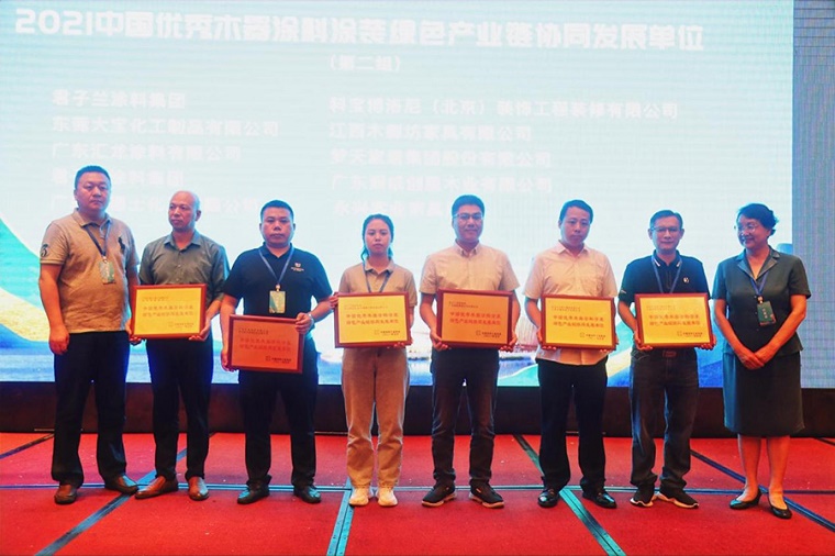 研討會現(xiàn)場,重點(diǎn)對“2021中國優(yōu)秀木器涂料涂裝綠色產(chǎn)業(yè)鏈協(xié)同發(fā)展單位”進(jìn)行了表彰與聯(lián)合授牌。大寶漆以優(yōu)秀的環(huán)保涂裝解決方案和創(chuàng)新的領(lǐng)先服務(wù)優(yōu)勢,致力于推動上下游產(chǎn)業(yè)鏈協(xié)同綠色發(fā)展,與江西木御坊家具有限公司保持深度合作,攜手推進(jìn)“協(xié)同發(fā)展、綠色制造”的成績獲得行業(yè)協(xié)會一致認(rèn)可,被分別授予該項(xiàng)榮譽(yù)獎牌,也是對大寶漆賦能環(huán)保、積極推動上下游產(chǎn)業(yè)鏈協(xié)同綠色發(fā)展的肯定。