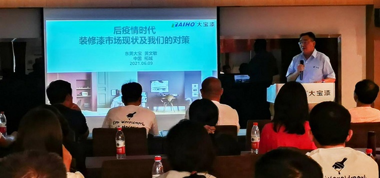 因黃課長自身參與了大部分新產(chǎn)品的規(guī)劃和驗證工作,體會深刻,細(xì)致入微,并且在沈陽協(xié)助當(dāng)?shù)亟?jīng)銷商操作裝修漆市場,所以產(chǎn)品的講解能結(jié)合到市場終端消費者的關(guān)注點,專業(yè)精到,沁人心脾。新產(chǎn)品的推介獲得了與會經(jīng)銷商的肯定和歡迎。