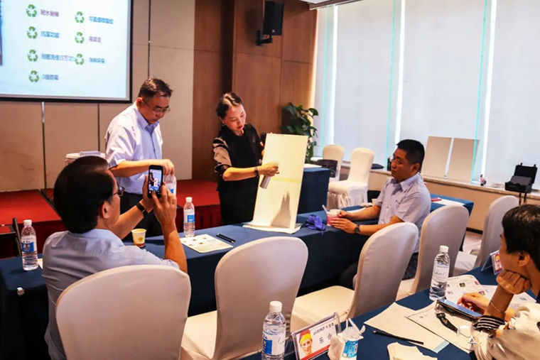 大寶培訓(xùn)學(xué)校夏秀麗老師,有系統(tǒng)地介紹2021年新品上市的主推產(chǎn)品物性,讓大家對大寶抗病毒全效墻面漆、大寶絲絨蛋殼光墻面漆、高倍安負(fù)離子墻面漆..等產(chǎn)品有了更加深入、透徹的認(rèn)識。期間與現(xiàn)場的經(jīng)銷商客戶穿插的互動環(huán)節(jié),把會議氛圍帶起了一個又一個高潮。