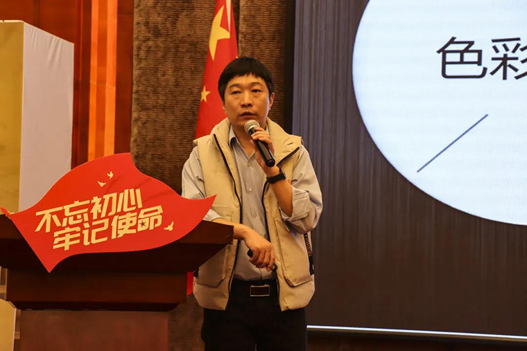 業(yè)三部執(zhí)行經(jīng)理張保中以“聚心而立,共力同行”為主題,全面詳細(xì)地闡述大寶裝?的秘密,色彩對(duì)人的影響及新色卡的問世,并首次向市場(chǎng)推廣4款大寶流行色。