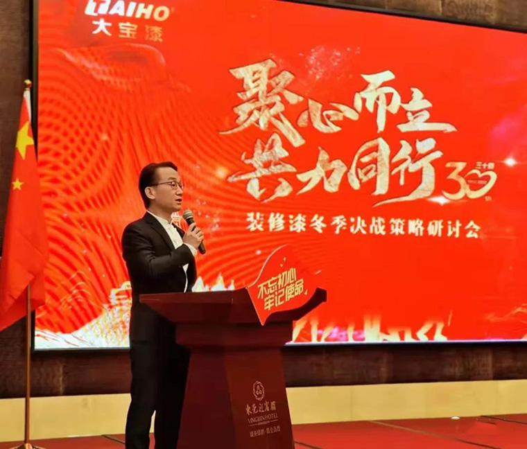 研討會(huì)在經(jīng)銷事業(yè)部副總經(jīng)理葉子琛的致辭中拉開序幕。葉副總表示,當(dāng)前的涂料市場(chǎng),面對(duì)著后疫情經(jīng)濟(jì)放緩、結(jié)構(gòu)調(diào)整、原材料價(jià)格上漲等不確定因素,希望這場(chǎng)以延安精神為主題的冬季決戰(zhàn)策略研討會(huì)的召開,能夠賦能經(jīng)銷商應(yīng)對(duì)當(dāng)前市場(chǎng)面臨的新挑戰(zhàn),與大寶攜手面對(duì)行業(yè)新格局、共創(chuàng)輝煌未來。