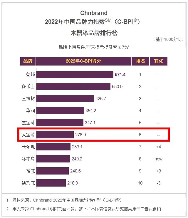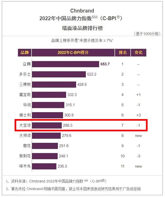 權(quán)威發(fā)布|大寶漆再次上榜2022年中國(guó)品牌力指數(shù)排行