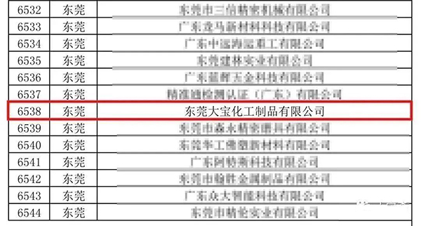 喜訊│東莞大寶化工通過廣東省“專精特新”企業(yè)認定!
