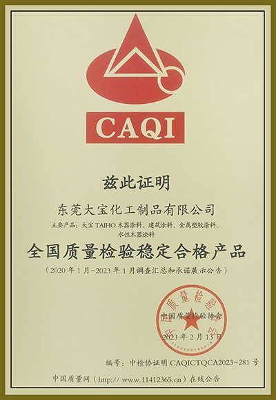 “提振消費信心”,為推動高質(zhì)量發(fā)展提供動力。一年一度的“3·15” 消費者權(quán)益日來臨之際,大寶漆憑借過硬的產(chǎn)品和服務(wù)質(zhì)量,再次榮獲中國質(zhì)量檢驗協(xié)會頒發(fā)的“全國質(zhì)量檢驗穩(wěn)定合格產(chǎn)品”、“全國涂料行業(yè)質(zhì)量領(lǐng)先企業(yè)”、“全國涂料行業(yè)質(zhì)量領(lǐng)先品牌”多項權(quán)威認證。