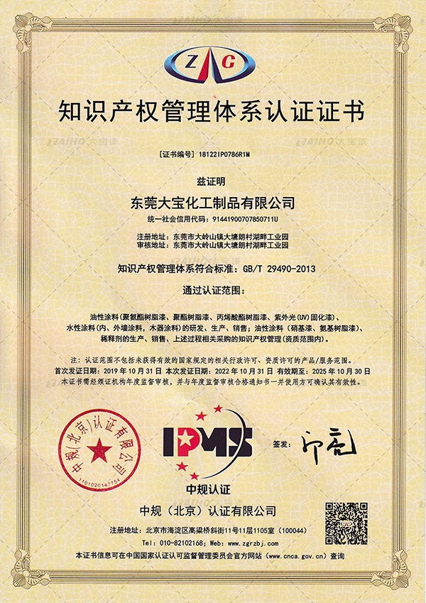 尊重產(chǎn)權,保護創(chuàng)造力|大寶化工再次榮獲企業(yè)知識產(chǎn)權管理認證