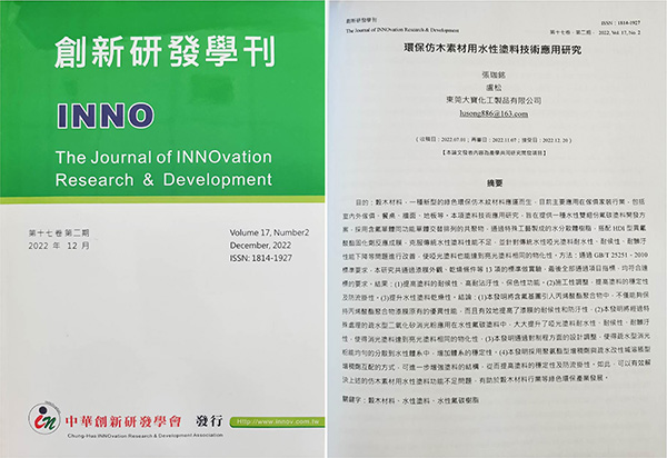 截至目前,東莞大寶化工制品有限公司已經(jīng)擁有數(shù)百項(xiàng)知識(shí)產(chǎn)權(quán),自2022年以來(lái),公司已累計(jì)新增專(zhuān)利申請(qǐng)10項(xiàng)與新增發(fā)表的國(guó)際學(xué)術(shù)期刊文章。
