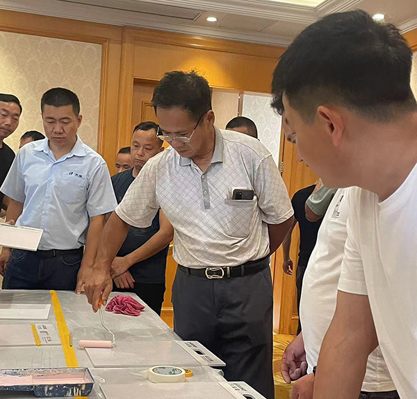 技術(shù)部周微老師為大家?guī)硭囆g(shù)涂料新品工藝的培訓(xùn),大家熱情高漲,積極參與,詳細(xì)記錄了各個工序環(huán)節(jié)的注意事項,60塊樣板全部現(xiàn)場制作完成。加強(qiáng)對經(jīng)銷商和施工人員的技術(shù)培訓(xùn),提高其對仿石漆的認(rèn)知和施工技能,確保產(chǎn)品應(yīng)用效果。
