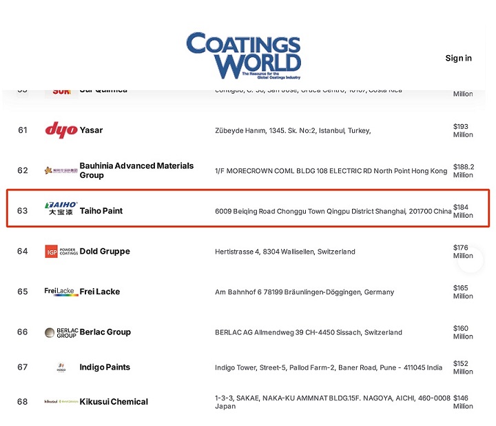 近日,美國權(quán)威雜志《涂料世界》(Coatings World)發(fā)布了2025年全球頂級(jí)涂料企業(yè)排行榜。作為中國涂料行業(yè)的優(yōu)秀企業(yè),大寶漆憑借卓越的產(chǎn)品品質(zhì)和持續(xù)創(chuàng)新能力,再度上榜。