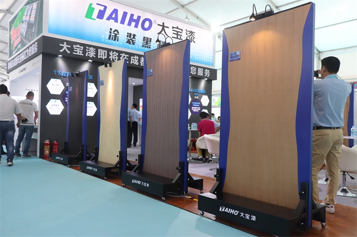 在眾多的展位中,大寶漆簡約大氣的展臺和高端時尚的色板十分引人矚目,吸引了眾多參展客戶參觀了解。