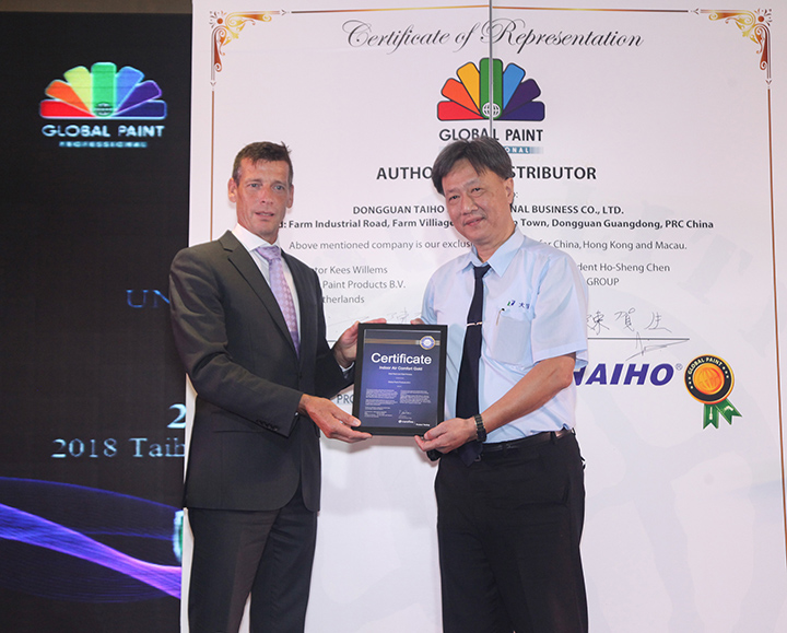 大寶國際陳賀生董事長與Global paint總裁Kees Willems上臺簽約