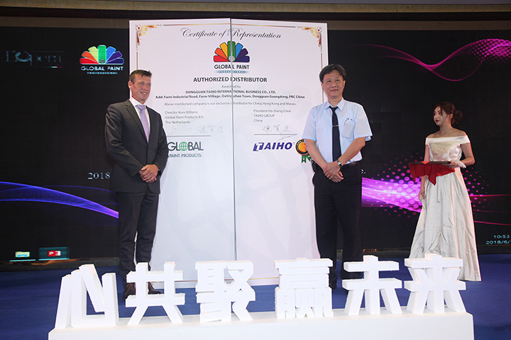 隨后,大寶國際陳賀生董事長與Global paint總裁Kees Willems上臺簽約,雙方正式建立全面、深入的戰(zhàn)略合作伙伴關(guān)系。