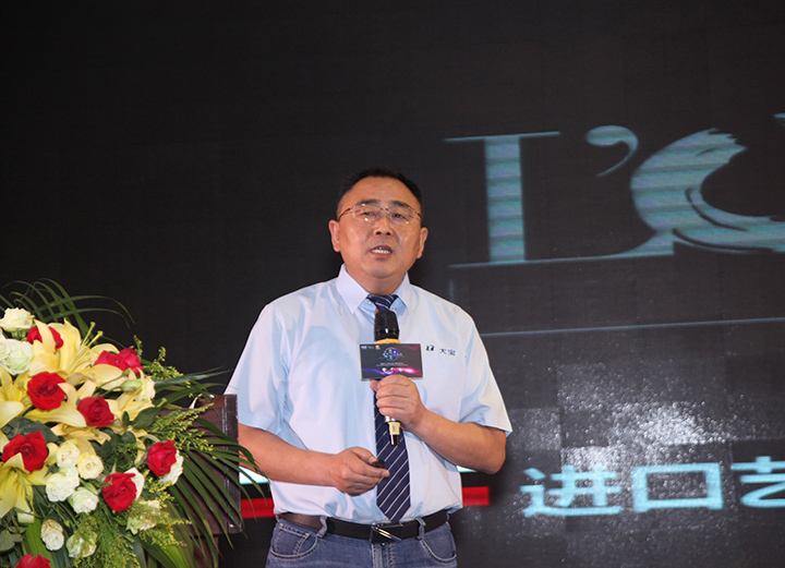 發(fā)布會于上午10:00正式開始。東莞大寶化工經(jīng)銷事業(yè)部葉子琛副總經(jīng)理致開幕詞。他表示,中國經(jīng)濟(jì)發(fā)展未來的重心將從規(guī)模和速度轉(zhuǎn)向質(zhì)量與效率,這要求我們降本增效,堅持可持續(xù)發(fā)展,生產(chǎn)真正適合市場需求的產(chǎn)品。因此,2017年4月,大寶漆組織團(tuán)隊遠(yuǎn)赴歐洲對優(yōu)質(zhì)涂料工廠進(jìn)行考察,經(jīng)過整整一年的互訪、協(xié)商、溝通,終于向大家呈現(xiàn)今天這場國際盛會。希望借助這場會議,推動行業(yè)從傳統(tǒng)進(jìn)入國際化的進(jìn)程,玩轉(zhuǎn)設(shè)計,品味時尚,這也不失為突破當(dāng)前發(fā)展困境,重獲競爭優(yōu)勢的戰(zhàn)略選擇。