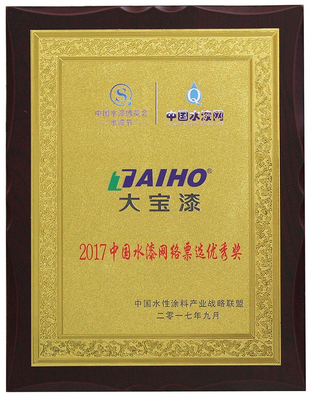 此次大寶漆在水博會中獲得了“2017中國水漆網(wǎng)絡(luò)票選優(yōu)選獎”,這是消費者對大寶水性漆及倡導的環(huán)保涂裝方案的充分肯定,同時也是對大寶漆在推動環(huán)保水性涂料發(fā)展方面的鞭策。