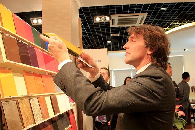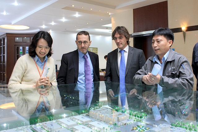 Barpimo公司人員先到大寶國際模型區(qū)進行了解,在業(yè)務(wù)部陳衛(wèi)華副理的介紹下,參訪人員對大寶集團各企業(yè)體的廠區(qū)規(guī)劃及歷史發(fā)展有了一個初步的認識。隨后參訪人員對研發(fā)課、中央實驗室、國內(nèi)市場展廳、色板中心和智能涂裝測試線等一一進行參觀。