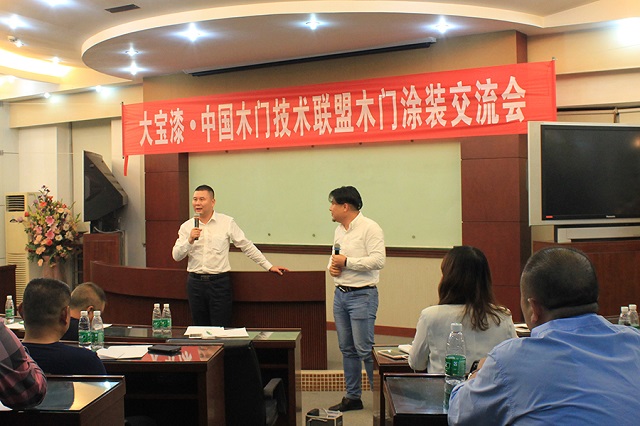 本次交流會的最大特點,不僅有大寶化工工作人員分享水性涂料的涂裝工藝,更有木門聯(lián)盟成員根據(jù)自己企業(yè)“油改水”遇到的問題在現(xiàn)場提問,共同探討解決方案。聯(lián)盟成員在會上表示,今日來訪大寶化工,不僅看到了大寶優(yōu)美的廠區(qū)環(huán)境和先進的技術(shù)設(shè)備,還希望大寶漆能夠協(xié)助木門企業(yè)打開水性涂裝的大門,少走彎路,切實解決企業(yè)環(huán)保涂裝的難題。