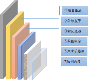 質(zhì)感漆以高品質(zhì)乳液,優(yōu)選天然石英砂為骨料、搭配進口助劑、顏填料(色漿)、通過混合、分散工藝制備而成,本產(chǎn)品具有附著力強、柔韌度好、防開裂性佳、質(zhì)感豐滿、防霉抗藻、耐候性佳和隔音降噪等卓越功能??赏ㄟ^不同效果的骨料搭配施工,營造出獨特立體的砂壁狀質(zhì)感效果。