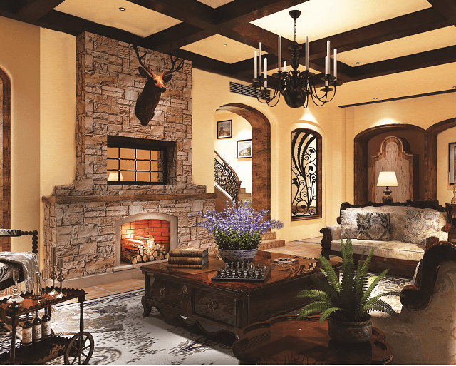 由于美國(guó)人喜歡有歷史感的東西,因此美式風(fēng)格崇尚仿古,這不僅反映在軟裝擺件上對(duì)仿古藝術(shù)品的喜愛,同時(shí)也反映在裝修上對(duì)各種仿古墻地磚、石材的偏愛和對(duì)各種仿舊工藝的追求上,如美式風(fēng)格的墻面裝修,喜歡使用大寶米蘭珠光石系列藝術(shù)壁材等材料,營(yíng)造紋理萬(wàn)千、天然去雕飾的仿石效果。