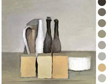 莫蘭迪色系源于意大利畫家喬治·莫蘭迪(作品見右圖),中國宋代以前的瓷器、繪畫作品也有很多相似色彩。莫蘭迪色具有低明度,低飽和度的特點(diǎn),摒棄了張揚(yáng)的色彩,融入適度灰色和白色作為調(diào)和,將原本濃郁艷麗的色彩轉(zhuǎn)化為優(yōu)雅高級(jí)的灰色質(zhì)感。莫蘭迪色因?yàn)椤堆屿麑m略》電視劇,成為一股勢不可擋的潮流,這系列色彩簡單說就是蒙著一層灰的低明度中性色調(diào),卻擁有久看不膩的質(zhì)感。