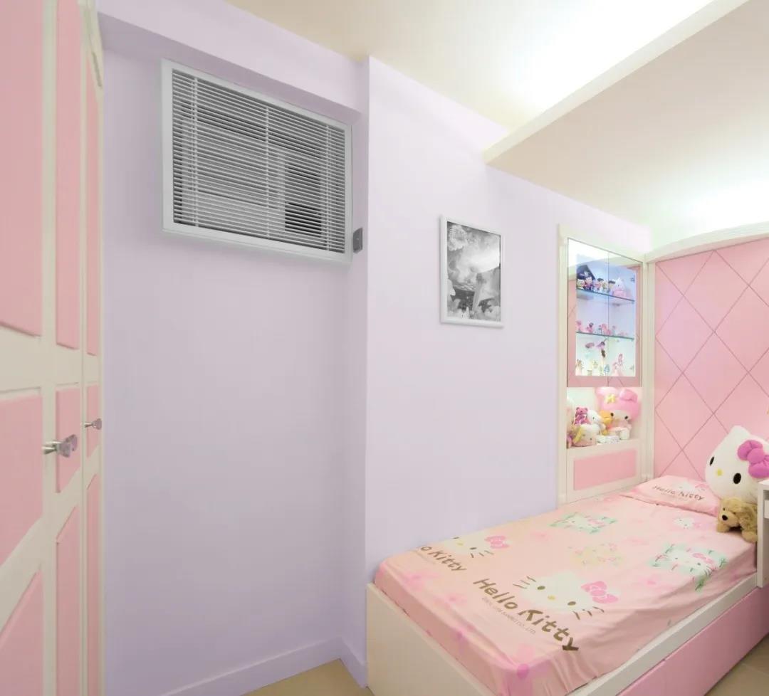 兒童房以淺紫、淺粉色為基調(diào),可以營(yíng)造出甜美的空間效果。淡紫色背景墻很好的消除了空間的單調(diào)感,十分溫馨。據(jù)稱,在色調(diào)溫和的環(huán)境中成長(zhǎng)的孩子,性格也會(huì)變得更溫和。