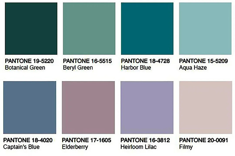 秋冬室內(nèi)色彩趨勢,以深綠色為主調(diào),輔助較為清新淡雅的藍、粉、紫與裸色,表達出平和溫潤的安定力,發(fā)散令人愉悅的舒適感,微妙吸睛。