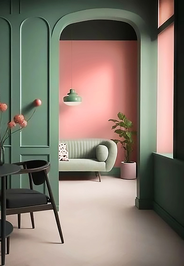 在室內(nèi)空間中刷上同類色的薄荷色系為居室注入一股淺淡的溫柔氣息并與木色搭配,WOW!氧氣感十足,國(guó)潮復(fù)古風(fēng),平和與時(shí)尚兼具,同時(shí)為空間增添自然原生態(tài)的氛圍。