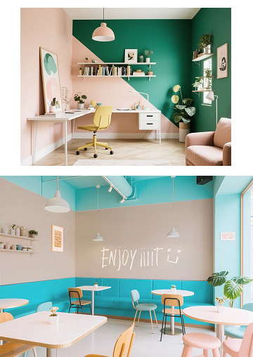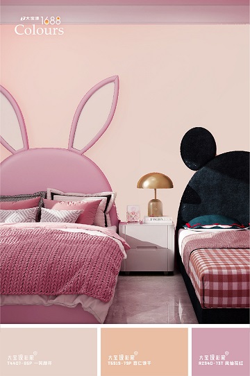 同色系搭配:與淺粉、蜜桃白組合,清透而浪漫,尤其適合臥室或兒童房,營(yíng)造安眠與愜意的氛圍。